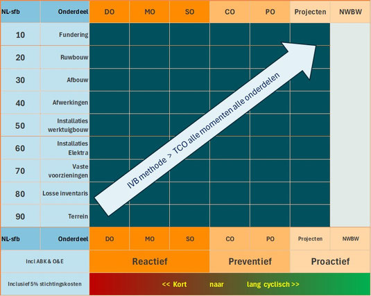 Volledigheid, alle onderdelen op basis van de NL-sfb-codering 10 tm 90 en alle instandhoudingsmomenten van reactief naar preventief naar proactief)